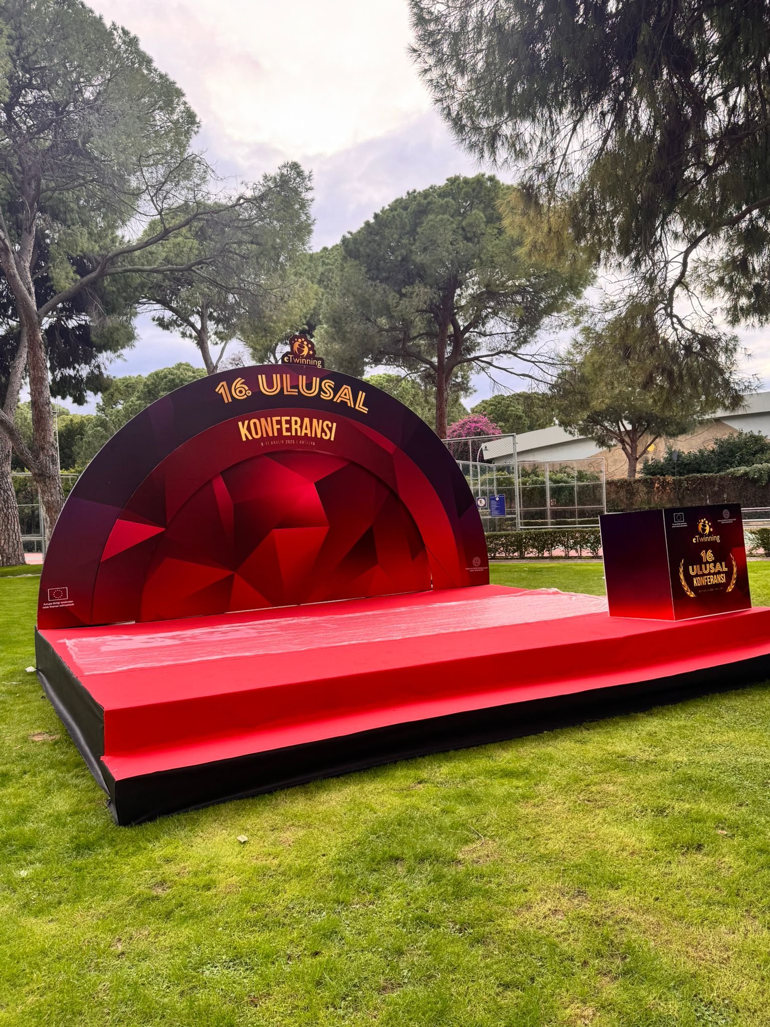 Sahne Platformu (Podyum): Modüler çelik veya alüminyum konstrüksiyon üzerine plywood zemin uygulanır. Üzeri, etkinliğin rengine uygun (genellikle kırmızı, turkuaz veya siyah) halı ile kaplanır. Podyum yüksekliği, izleyicilerin görüş açısına göre ayarlanır.
